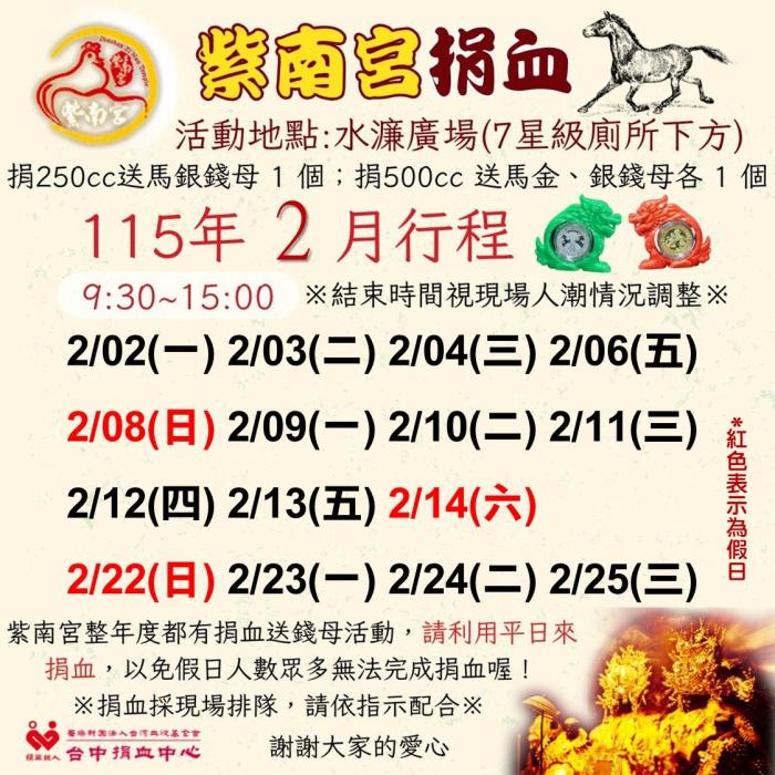 115年2月份捐血日程表出爐囉!
